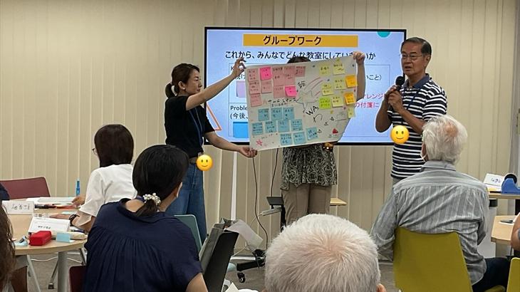 今までの振返り、自己紹介、これからどんな教室にしていきたいか、これからやってみようと思うことをグループワークで話し合いました。