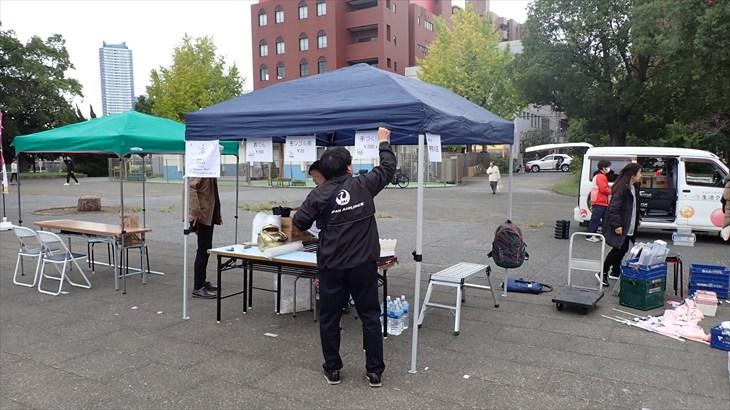 9時ころから反町公園に入り、テント設営やおでんの準備などを行い、10時30分に販売開始しました。