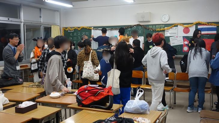 翠嵐高校定時制の多文化共生部活が開催するハロインパーティに招待され参加しました。21時に担当先生のお出迎えがあり迷路のような廊下を歩きハロインの飾り付けが行われている教室に到着しました。